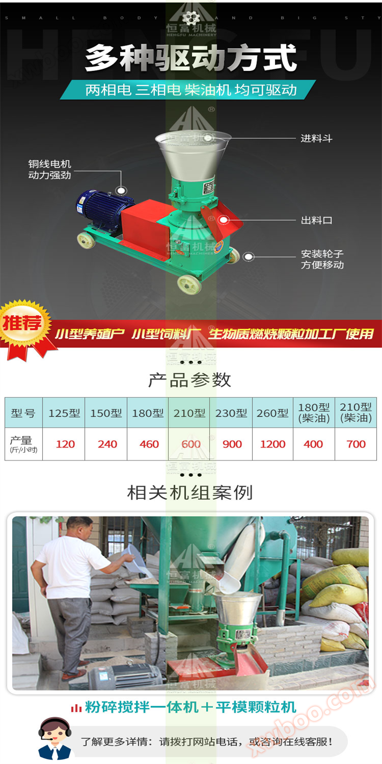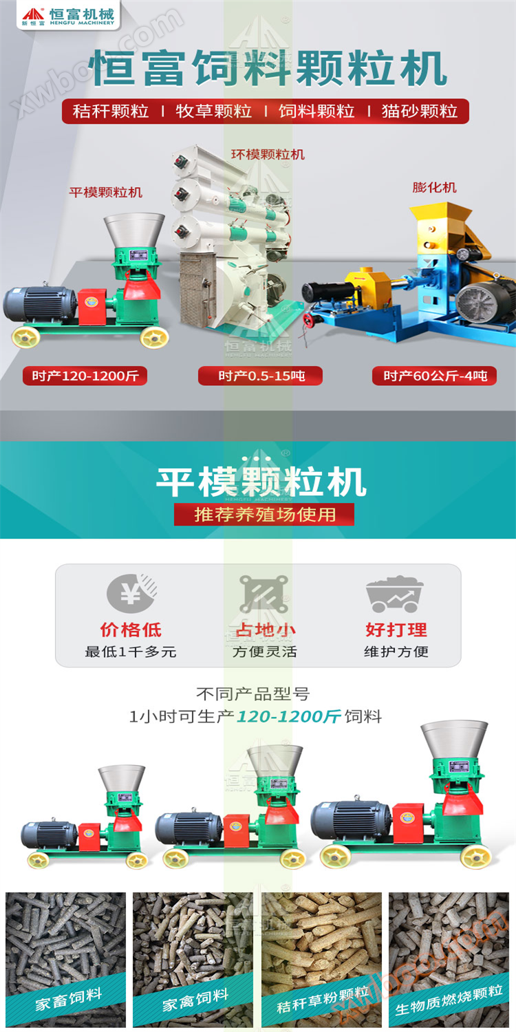La macchina per granulatori di mangimi Hengfu può produrre granulatori di paglia, granulatori di pascolo, granulatori di mangimi, granulatori di sabbi