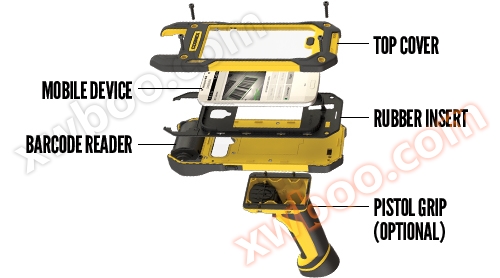 La piattaforma MX è una piattaforma modulare orientata al futuro che può essere utilizzata su tutti i tipi di Android ® e iOS ® Gli smartphone. Se il dispositivo richiede una riparazione o un aggiornamento, è sufficiente sostituire il kit per il coperchio superiore per utilizzare MX-1502 su qualsiasi dispositivo mobile supportato. L'accessorio a presa a pistola raddoppia la capacità della batteria MX-1502 che alimenta i motori di scansione e i dispositivi mobili.