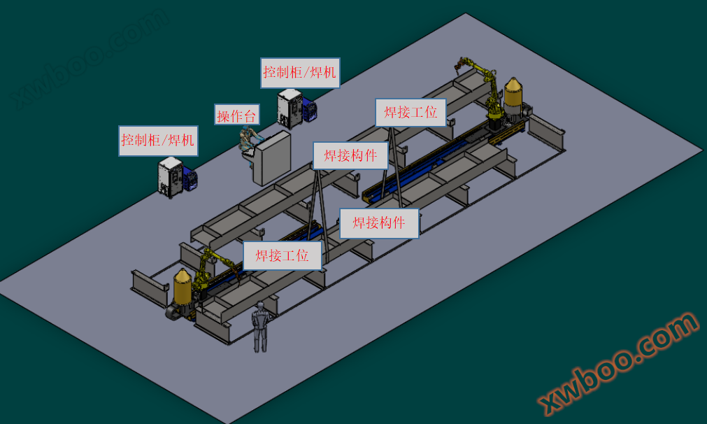 1.1.3 pannelli di ponte, pannelli di separazione di tipo grande scatola e altre strutture, a causa della saldatura più lunga, il numero di tipi di saldatura è ridotto, l'uso di modelli guidati per la saldatura, meno intervento umano, alta efficienza di saldatura, l'operatore può operare il lavoro di più macchine;
