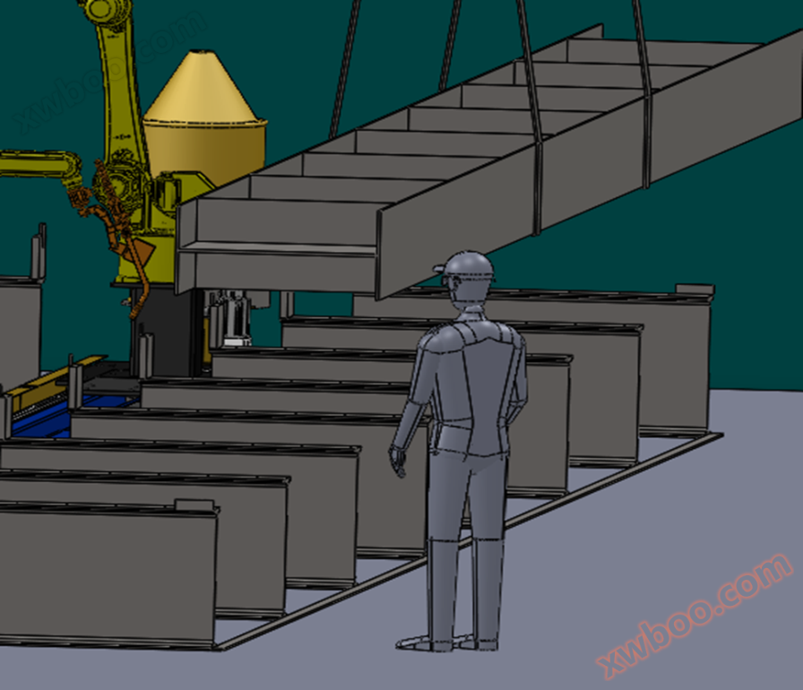 1.1.2 I prodotti con colonne in acciaio di tipo H, travi del tetto, pannelli di rinforzo interni della struttura a forma di scatola e saldature principali e altri tipi di strutture, utilizzando l'interazione visiva uomo-macchina per il lavoro, l'operatore può gestire il lavoro multi-macchina;