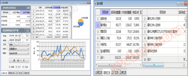 Modulo statistico: può consultare i dati complessivi dell'azienda, le statistiche del progetto, le statistiche per fabbrica, le statistiche per processo.