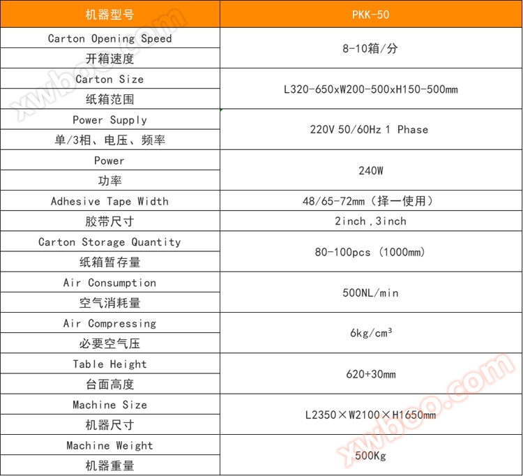 PKK-50 è l'apertura automatica del cartone iterativo, la parte inferiore della scatola viene piegata automaticamente secondo la procedura, la parte in